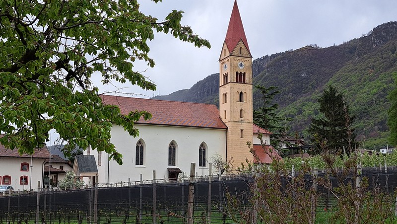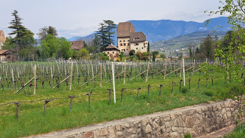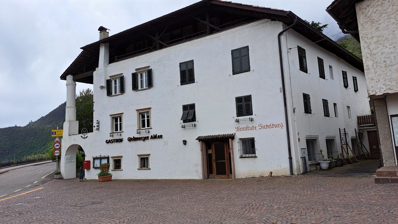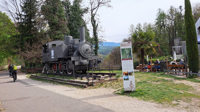 2.Tag: Heute wollten wir auf der uns schon aus den Vorjahren bekannten Strecke nach Kaltern usw. fahren. Nach einem sehr guten ausgiebigen Frühstück starteten wir heute sogar zu neunt zum Etschtal-Radweg runter. Auf diesem Radweg ging es bis nach Sigmundskron. Dort fuhren wir zum Teil auf einer alten Bahntrasse, die jetzt als Radweg ausgebaut ist und auch durch einige Tunnels führt nach oben. Es ging vorbei an Girlan und St.Michael bis nach Kaltern.