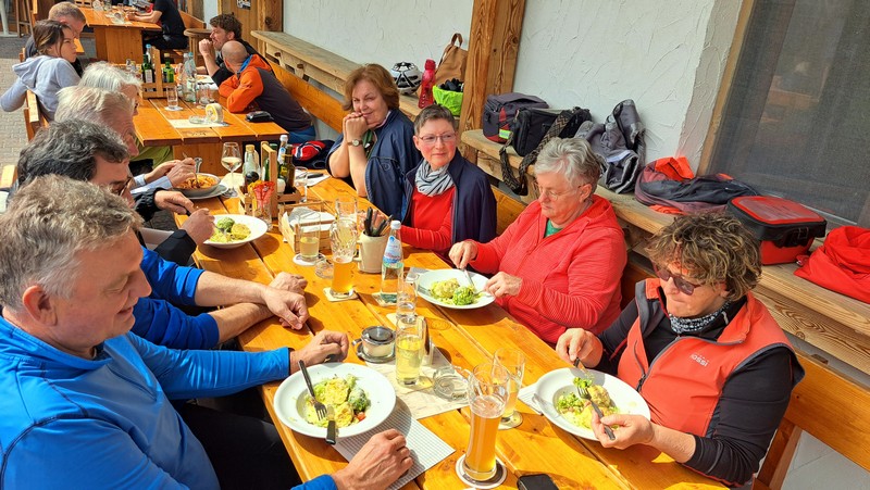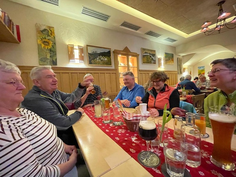 Abends waren wir beim Abendessen im Gasthof „Schwarzer Adler“. Hier gab es für uns gute Nudelgerichte und dann für einige als Nachspeise noch einen Kaiserschmarrn. Später waren wir natürlich noch auf einen Wein im Wintergarten unseres Hotels.