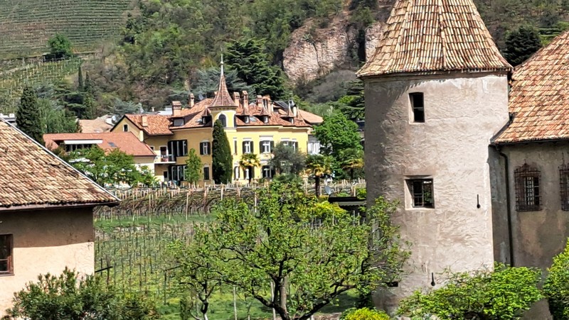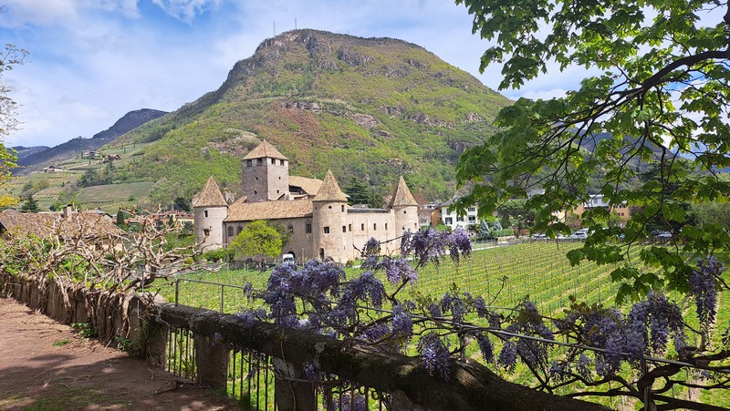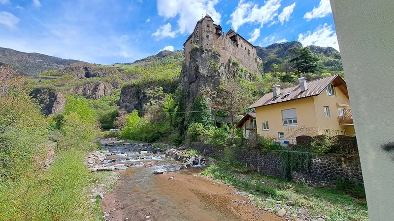 Wir fuhren nach Terlan zum Etschtal-Radweg und dann über Siebeneich und Moritzing nach Bozen. Wir überquerten den Fluß Talfer und fuhren dann ganz langsam die Wassermauer-Promenade, die eigentlich für Radler verboten ist, entlang. Es ging vorbei an Schloß Maretsch und Schloß Klebenstein bis zum Schloß Runkelstein. Hier kehrten wir aber wieder um, da wir eine Kaffeepause einlegen wollten.