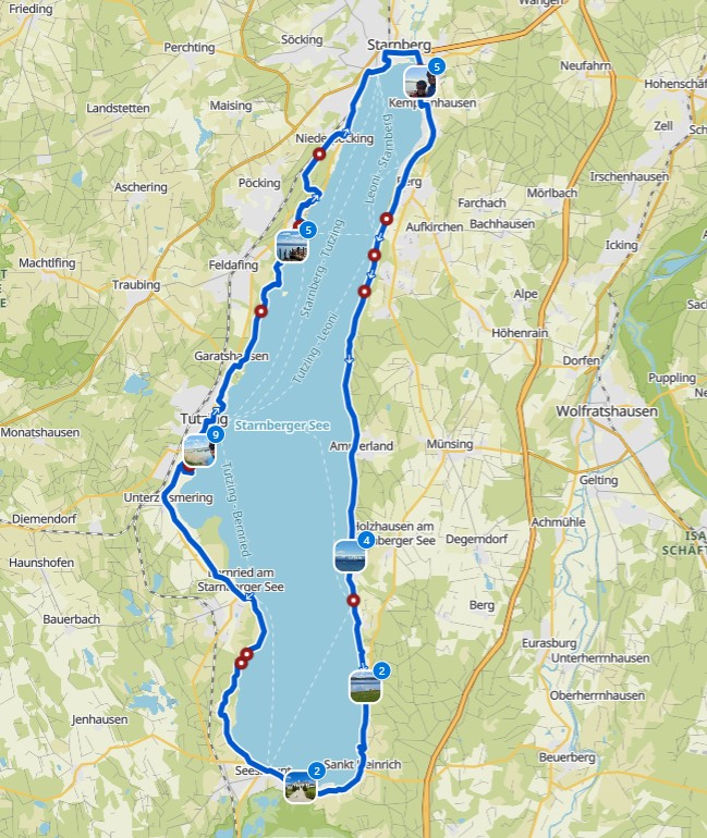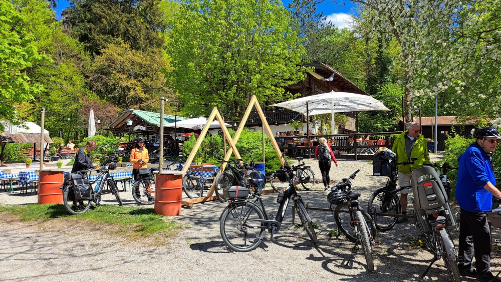 Zu sechst fuhren wir heute um 9:30 Uhr mit unseren E-Bikes auf drei Autos nach Percha an den Starnberger See. Immer in Seenähe fuhren wir vorbei an einigen Villen über Berg, Leoni und Ammerland nach Buchsarn, wo wir im Biergarten vom Buchsarner Seewirt unsere Mittagspause einlegten. Dann ging es weiter nach St.Heinrich, Seeshaupt, Bernried und Tutzing mit einer kleinen Kaffee- bzw. Eispause. Auf dem weiteren Weg waren plötzlich sehr viele Leute mit Rucksäcken auf dem Fuß- und Radweg unterwegs. Wir mussten sehr oft klingeln um uns bemerkbar zu machen. Wie wir dann erfuhren fand heute der Mammuthmarsch München mit Strecken von 30 bis 100 km am und in der Nähe vom Starnberger See statt. Vorbei am Schloß Possenhofen erreichten wir Starnberg und dann wieder unsere Autos in Percha.