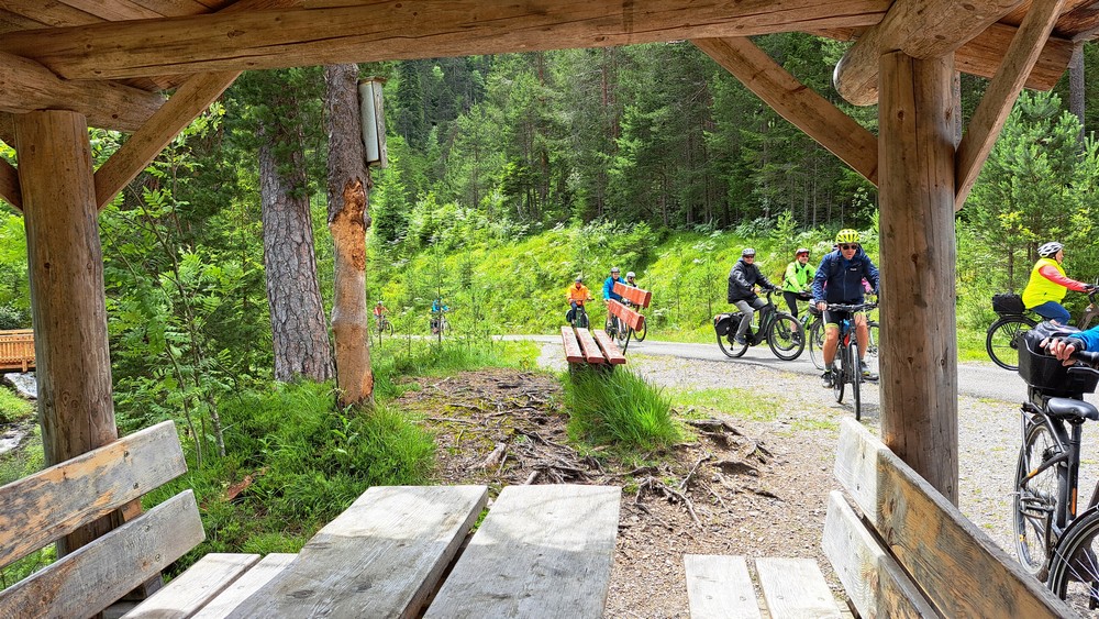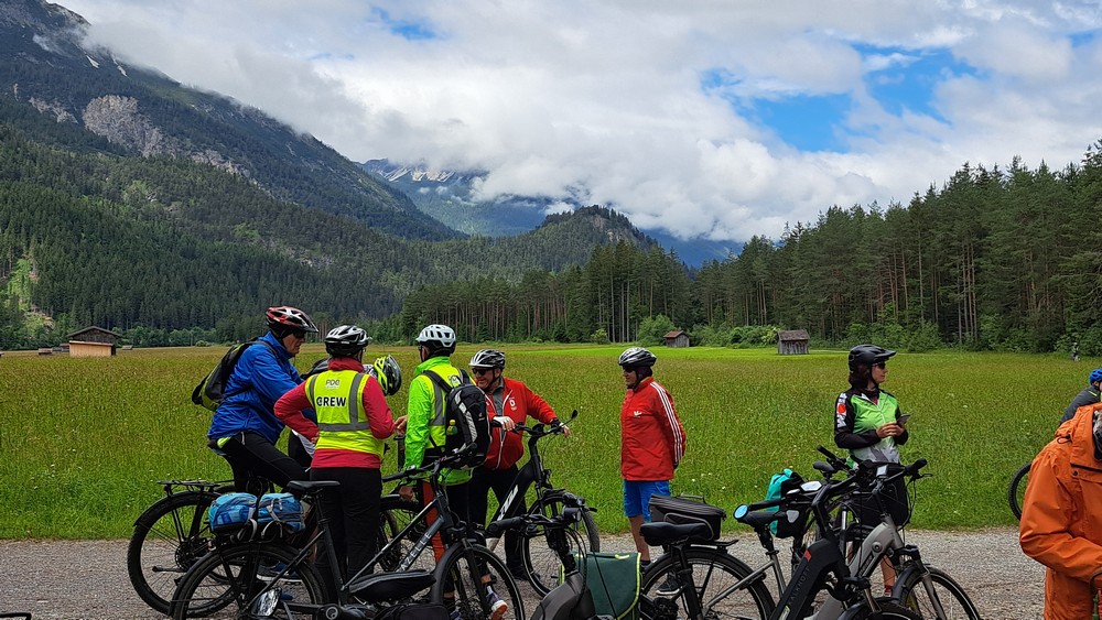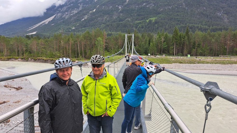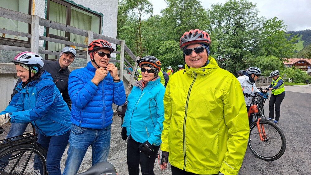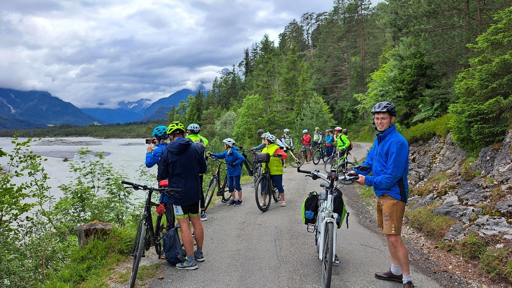 Auf dem sehr gut ausgebauten Lechradweg ging es dann immer in der Nähe vom Lech weiter bis Reutte. Unterwegs schaute jetzt sogar öfters die Sonne raus und es war auch wärmer geworden. In Reutte wartete schon der Bus auf uns. Die Räder wurden verladen und die Busfahrer brachten unsere Gruppe, nur unterbrochen von einer Brotzeitpause im Wirtshaus Urtalerhof, wohlbehalten zurück in die Hallertau. Es war eine schöne Tour mit einer gut gelaunten super Radlertruppe.