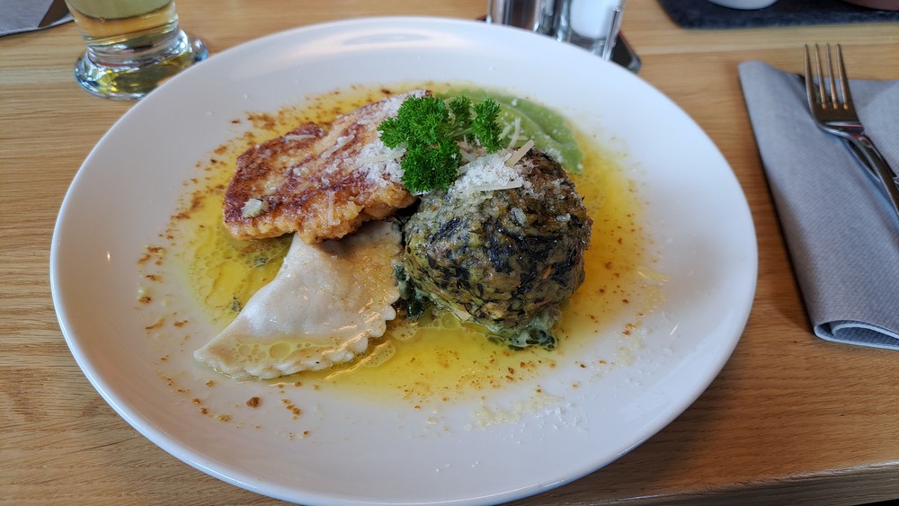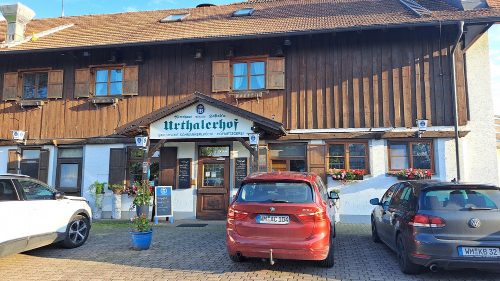 Brotzeitpause auf der Heimfahrt im Urthalerhof – unsere heutige Radlerstrecke über 56 km am schönen Lechradweg.
