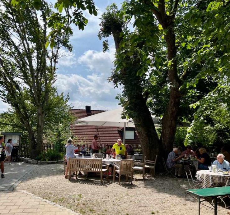 Überwiegend auf geschotterten Wegen fuhren wir nach Dorfacker, Kühnhausen und Berg bis wir Kranzberg erreichten. Jetzt fuhren wir die Amper entlang zum Kranzberger See. Weiter ging es zum Amperkanal und dann nach Hohenbercha, wo wir im Gasthaus Höger Mittag machten.