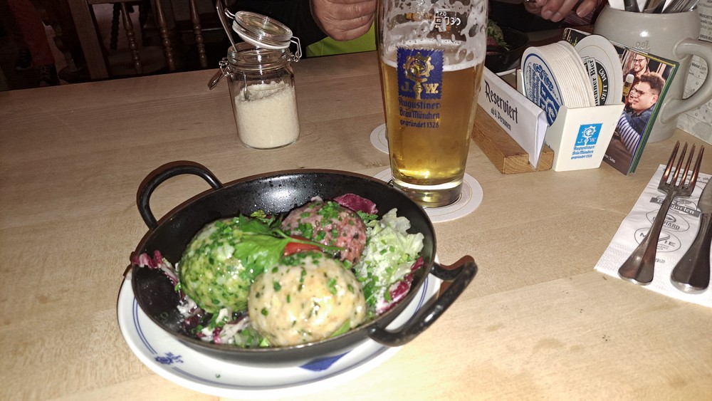 Wir Männer entdeckten freie Plätze im Augustiner, da war es klar, die Frauen durften ruhig durch die Lauben bummeln, wir wollten inzwischen lieber ein Bierchen genießen. Aber schon bald waren wir alle wieder vereint um dort Mittag zu machen. Auch hier gab es für einige „Tris“, die aber nicht ganz so gut schmeckten wie im Kalterer Biergarten.
