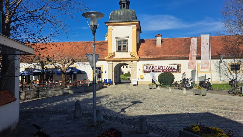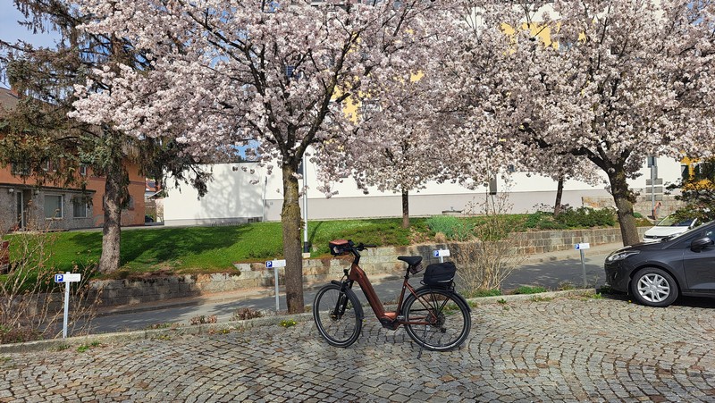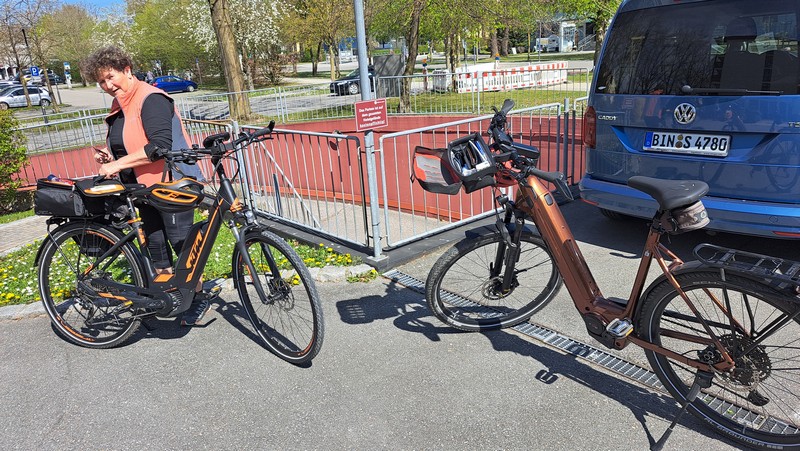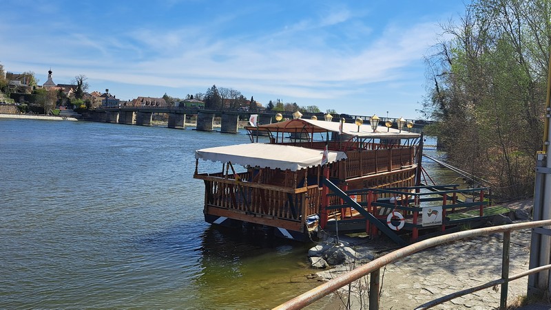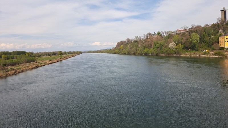 Am Samstag 12.April starteten wir um 9:30 Uhr mit unseren E-Bikes am Heckträger nach Landshut zur Autobahn. Über Dingolfing, Deggendorf und Passau ging es bei sehr wenig Verkehr bis zur Ausfahrt Pocking. Schnell war dann unser Ziel, das Hotel Königshof in Bad Füssing erreicht. Wir wußten, daß wir unser Zimmer erst nachmittags beziehen konnten und hatten daher schon zu Hause unsere Radlerkleidung angezogen. Das Auto parkten wir in der Hoteltiefgarage, luden die Fahrräder ab und schon konnte es zur ersten Radtour losgehen. Ich hatte für heute wieder die uns schon bekannte schöne Tour nach Schärding in Oberösterreich ausgesucht. Auf der österreichischen Innseite wollten wir dann zurück nach Bad Füssing fahren.