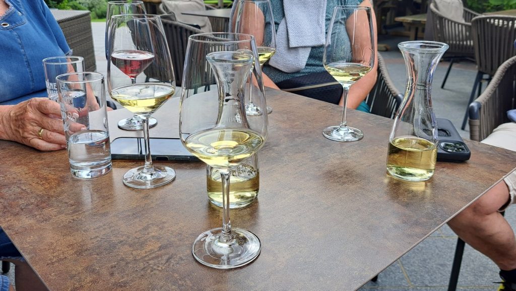 Am Abend saßen wir natürlich wieder auf der Hotelterrasse bei einem Glaserl Wein zusammen.