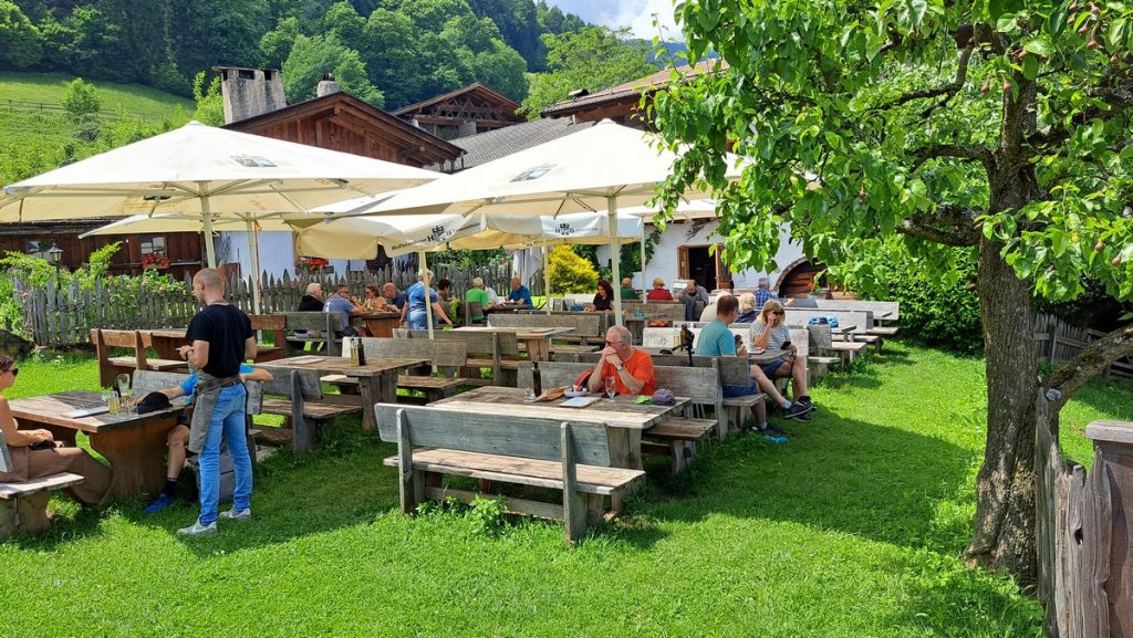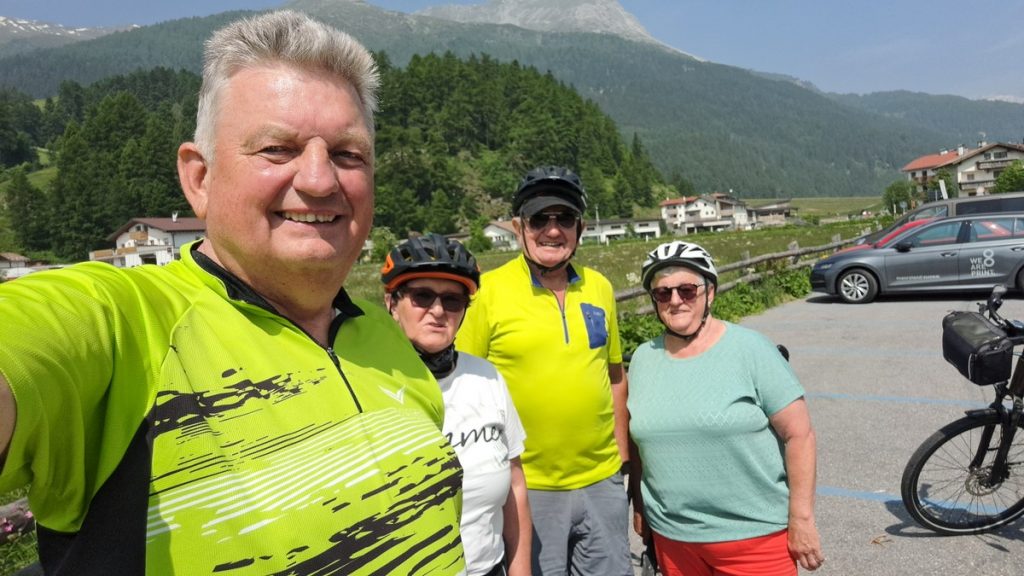 Wir starteten schon um 5 Uhr morgens und legten dann bei Holzkirchen eine Frühstückspause in einer Bäckerei ein. Hier trafen wir natürlich auf ein befreundetes Ehepaar. Da wir das „Pickerl“ und die Maut für die Brennerautobahn schon online gebucht hatten, kamen wir ohne Halt und ohne Stau – trotz Sanierungsarbeiten auf der „gefürchteten“ Luegbrücke – schnell nach Südtirol und waren schon um 10 Uhr am Andrianer Hof.