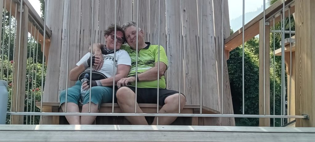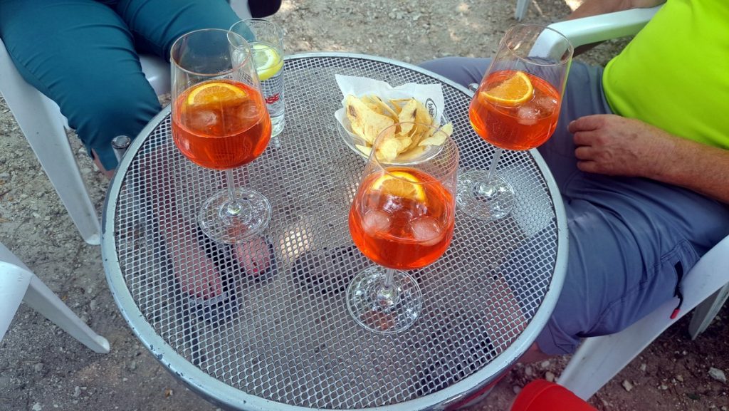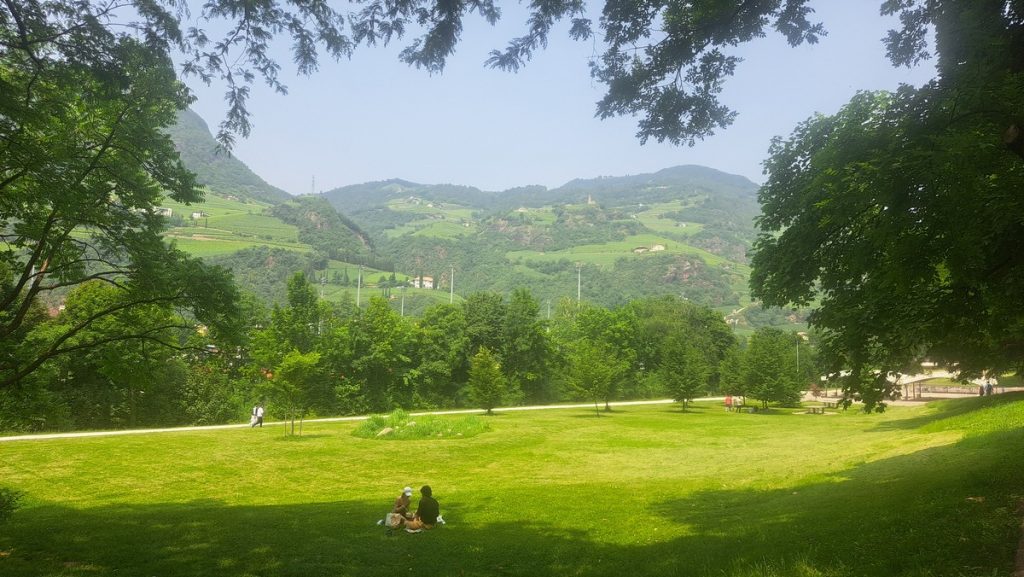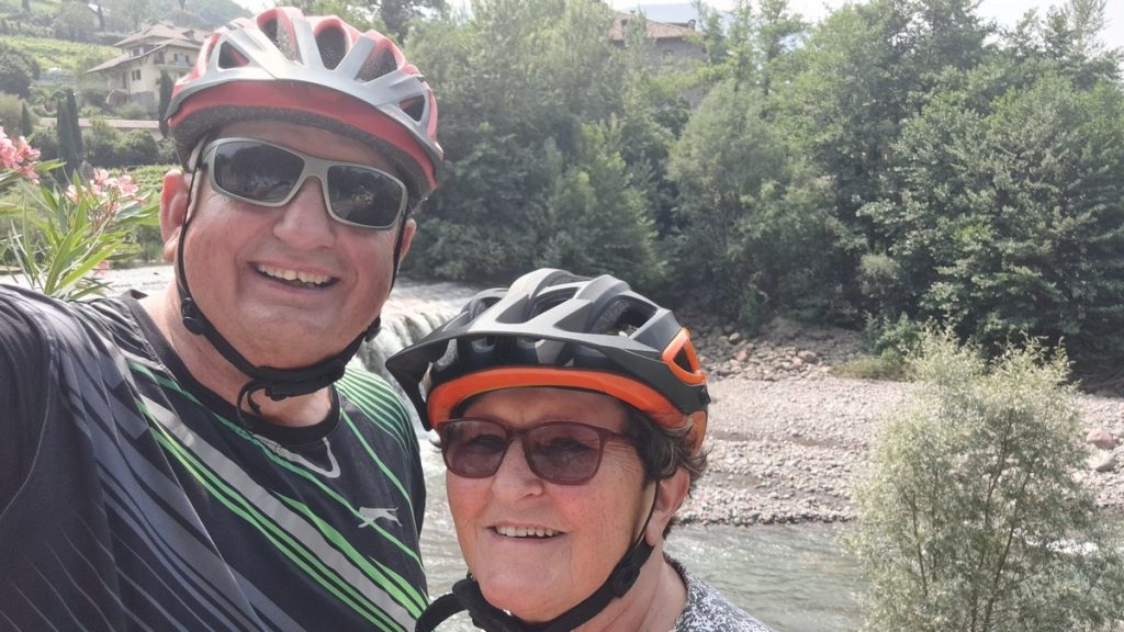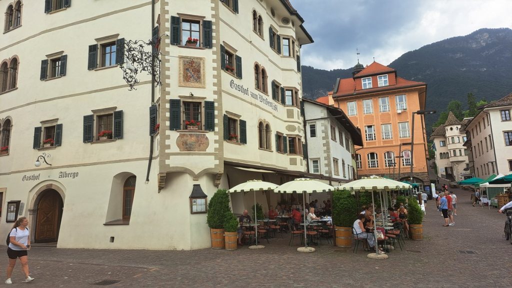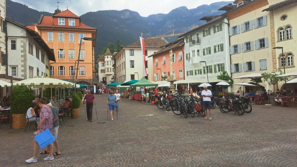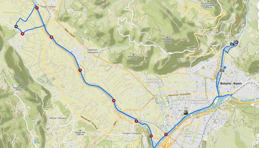 Nach dem Frühstück reisten heute zwei unserer Radlerfreunde ab. So starteten wir zu viert auf eine gemütliche Tour nach Bozen, das wir auf dem Etschtalradweg über Sigmundskron und dann weiter an der Eisack erreichten. Wir fuhren durch die Parks an der Talfer bis kurz vor dem Schloß Runkelstein und zurück an der „Bozner Wassermauer“. Hier machten wir auf einen Aperol und einen Snack Pause. Zurück nach Andrian ging es dann auf demselben Weg.