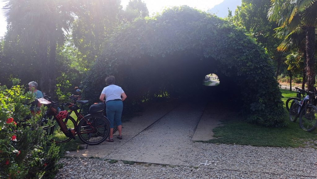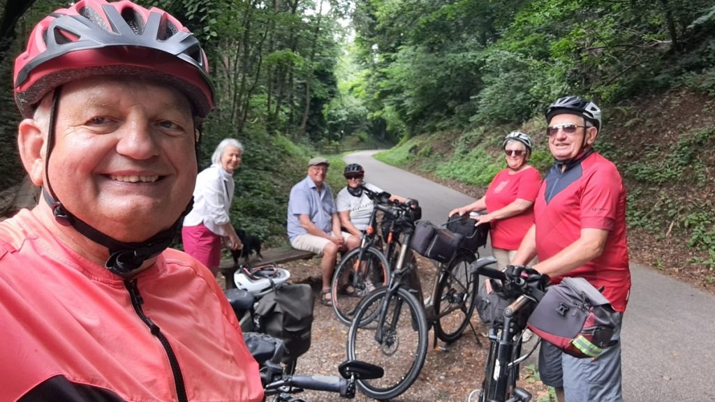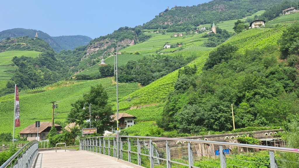 Nach einem sehr guten Frühstück starteten wir zu sechs mit unseren E-Bikes Richtung Kaltern. Zuerst ging es immer der Etsch entlang bis Sigmundskron, dann aber auf einer ehemaligen Bahntrasse nach oben bis St.Michael und Kaltern.
