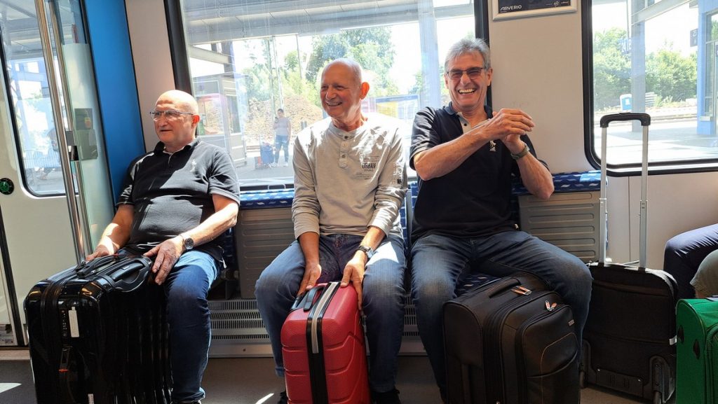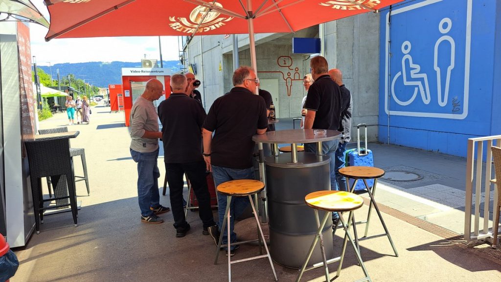 Statt Autos hatten wir uns dieses Jahr für die An- und Rückreise mit öffentlichen Verkehrsmitteln entschieden. Wir starteten zu zehnt um 09:15 Uhr mit dem MVV-Bus nach Freising. Dort angekommen mußtren wir uns beeilen, da die S-Bahn nach München schon am Bahnsteig wartete. So ging es gleich weiter nach München und dort in den Zug nach Lindau. Wegen einiger Baustellen auf der Strecke kamen wir um 15 Minuten später in Lindau-Reutin an und verpassten so den Anschlußzug nach Lindau-Insel. Aber jetzt gab es dafür am Bahnhofskiosk endlich etwas zu trinken und dann ging es mit dem nächsten Zug weiter zum Bahnhof Lindau.