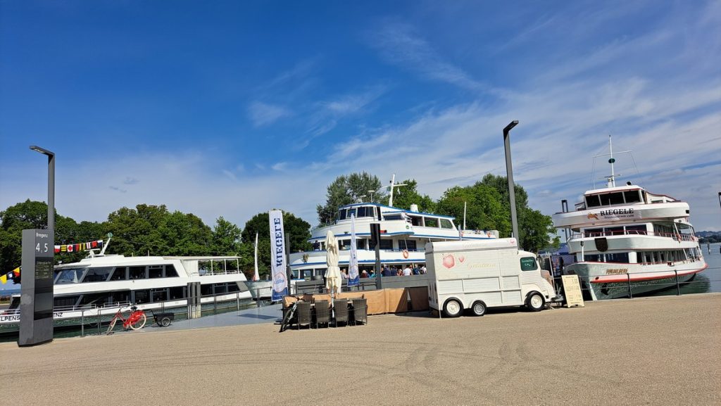 Mit einem sehr guten Frühstücksbuffet in unserem Hotel begann der nächste Tag. Am zweiten Tag ist traditionell „Kultur“ angesagt. In Lindau war da natürlich eine Schifffahrt auf dem Bodensee obligatorisch. Um 10:00 Uhr hies es „Leinen los“, auf gehts mit dem Schiff über den Bodensee nach Bregenz in Österreich.