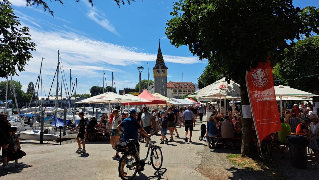 Wieder zurück in Lindau waren wir heute natürlich beim Stadtfest unterwegs. Es gab mehrere Bühnen mit unterschiedlichen musikalischen Darbietungen bzw. verschiedenen Musikbands. Spätabends waren wir dann noch in einem Biergarten bei einem Glaserl Wein. Früher als am Vortag gingen die meisten dann ins Hotelzimmer.