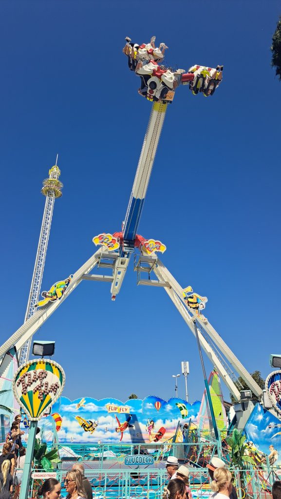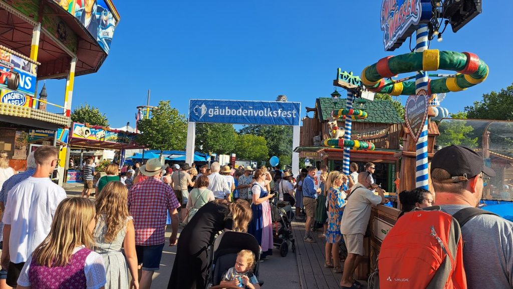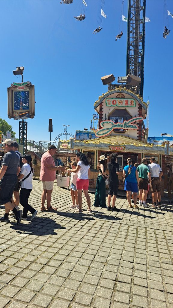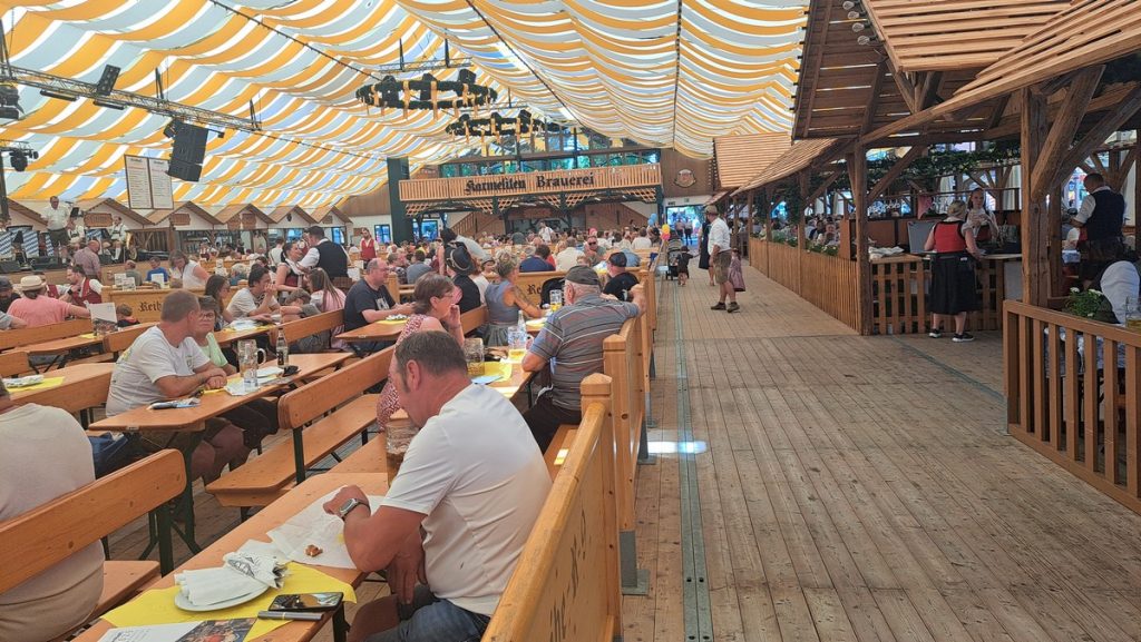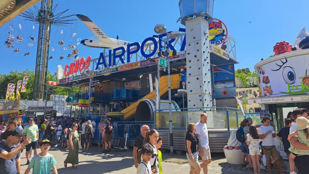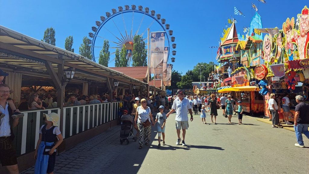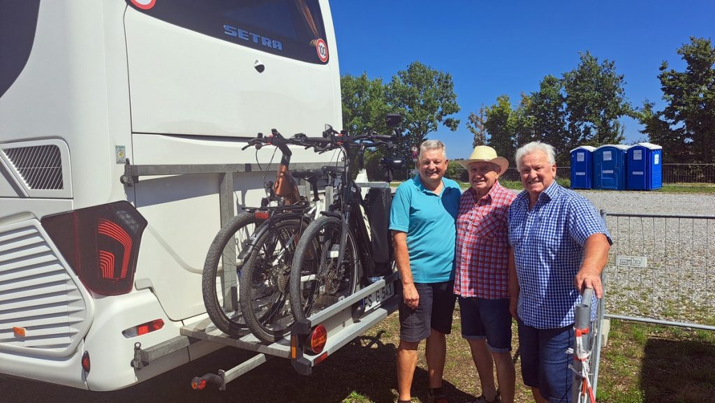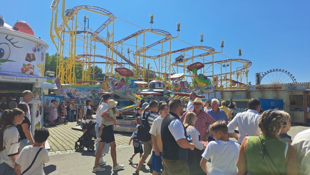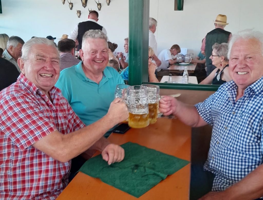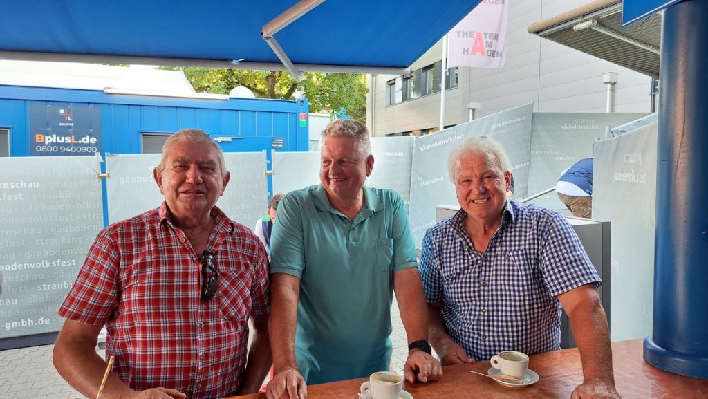 Unser Bus hatte auch dieses Jahr einen Heckträger für Fahrräder dabei, auf den wir unsere E-Bikes verladen konnten. Schnell zogen wir unsere Radlerkleidung aus und machten uns frisch. Dann zogen wir normale kurze Hosen an, die wir zu Hause im Bus deponiert hatten. Und schon ging es zu Fuß ca. 1 km weit ins Gäubodenvolksfest. Nach einem schönen Nachmittag fuhr uns der Bus um 19 Uhr zurück in die Hallertau. Dort war dann ein schöner sportlicher und ab Mittag gemütlicher Volksfesttag bei ziemlich warmen Temperaturen zu Ende.