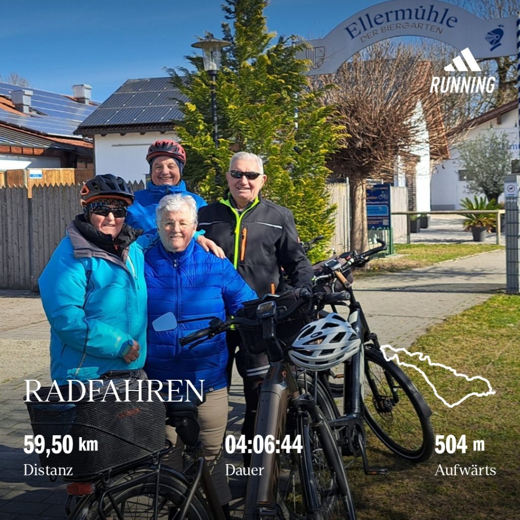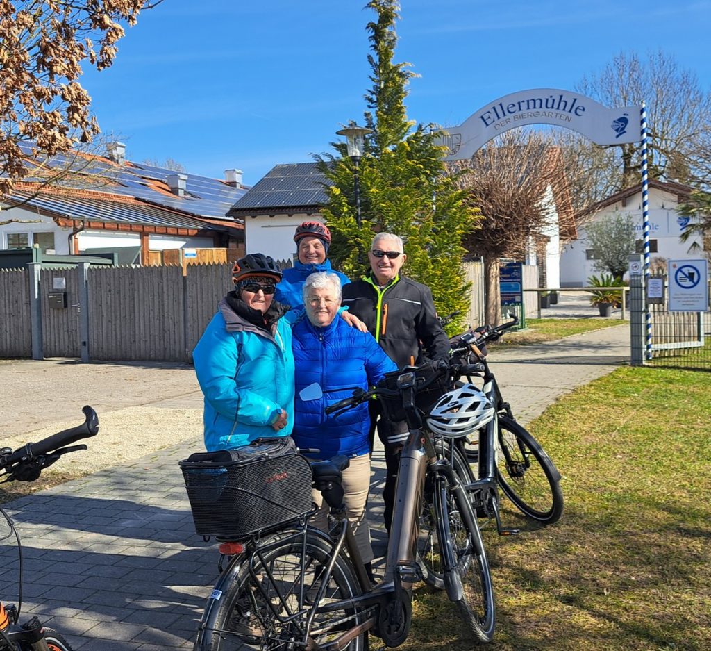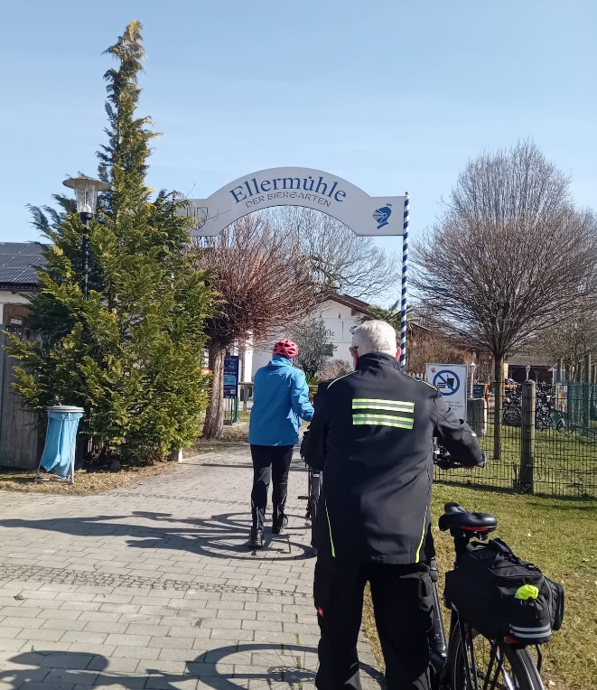 Da für heute Sonnenschein angesagt war, war für uns natürlich klar, daß wir zur Ellermühle radeln wollten. Um 11 Uhr starteten wir zu viert bei 10 Grad und Sonnenschein. Über Grafendorf und Sielstetten ging es nach Gammelsdorf und dann weiter zum Biergarten Ellermühle. Inzwischen war es schon 16 Grad warm geworden und im Biergarten saßen tatsächlich alle im Freien. Kein Wunder es war ja angenehm warm und Sonne pur!