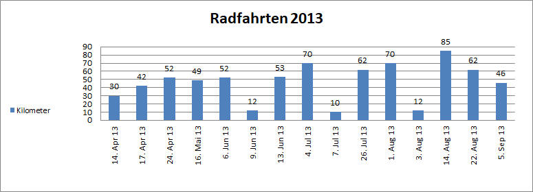 Leider endete dieses Jahr die Saison dann schon am 5.September. Insgesamt bin ich dieses Jahr nur 707 Kilometer gefahren. Es waren 15 Fahrten mit durchschnittlich 47 Kilometern.